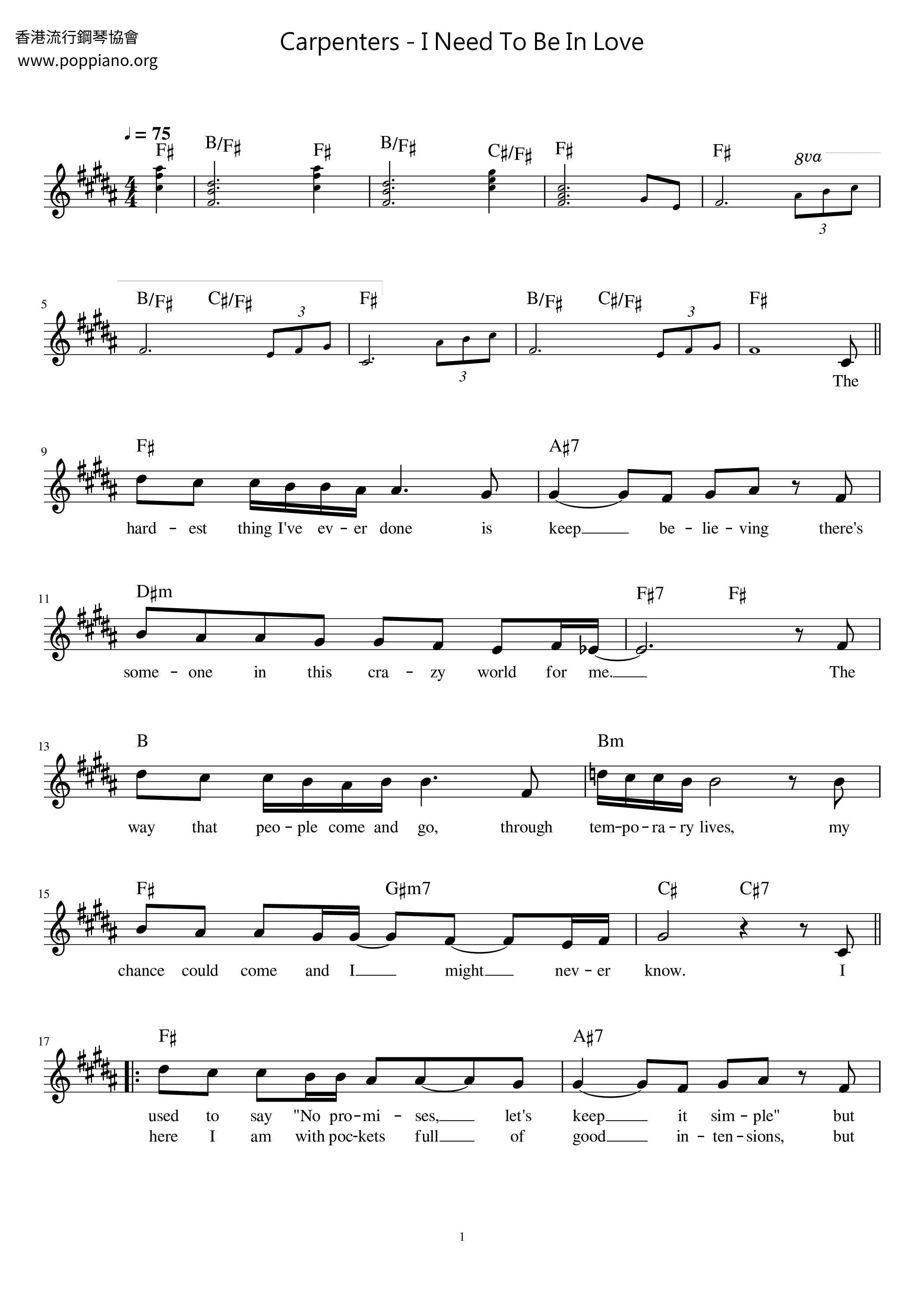 Carpenters I Need to Be in Love Sheets by Takajoe