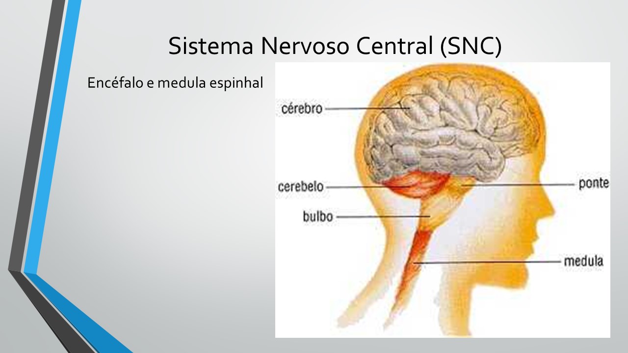 Divisões do sistema nervoso O sistema nervoso pode ser dividido em central (SNC) e periférico