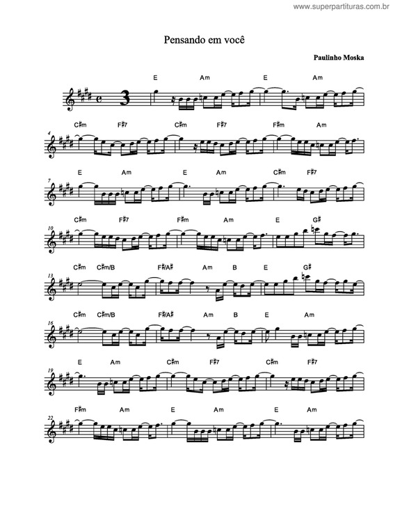 Pensando em você SIMPLIFICADA Paulinho Moska. G. Dividir em colunas. Versão (4) Editar Imprimir Rolagem automática. Capotraste Não. Primeira Parte: G Eb G Eu estou pensando em você Eb Em Pensando em nunca mais A Em Pensar em te esquecer A Am Pois quando penso em você D G É quando não me sinto só Eb G Com minhas letras e canções Eb Em.