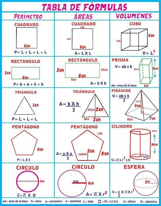 MUNDOGENIAL DE LA MATEMÁTICA FÓRMULAS PERÍMETRO, ÁREA, VOLUMEN en