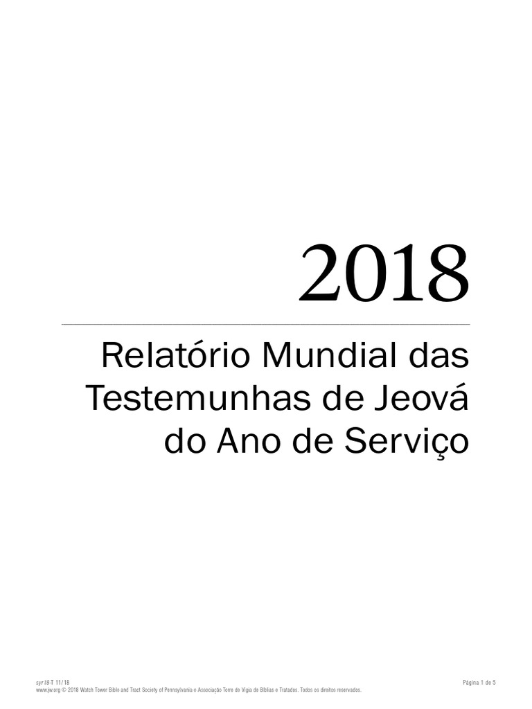 Relatório Mundial Das Testemunhas de Jeová Do Ano de Serviço de 2018 PDF Movimentos cristãos