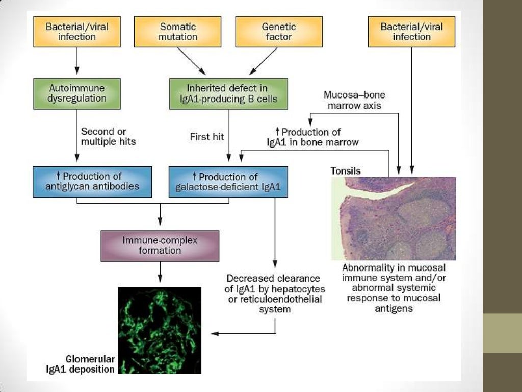 Primeiro golpe. A nefropatia por IgA é uma doença renal que ocorre quando uma forma anormal do anticorpo IgA, denominada IgA1 probremente glicosilada ou IgA1 deficiente em galactose ( Gd-IgA1 ), se acumula nos rins. A IgA1 probremente glicosilada refere-se a um tipo específico de anticorpo IgA que tem cadeias de açúcar anormais ligadas a ele.
