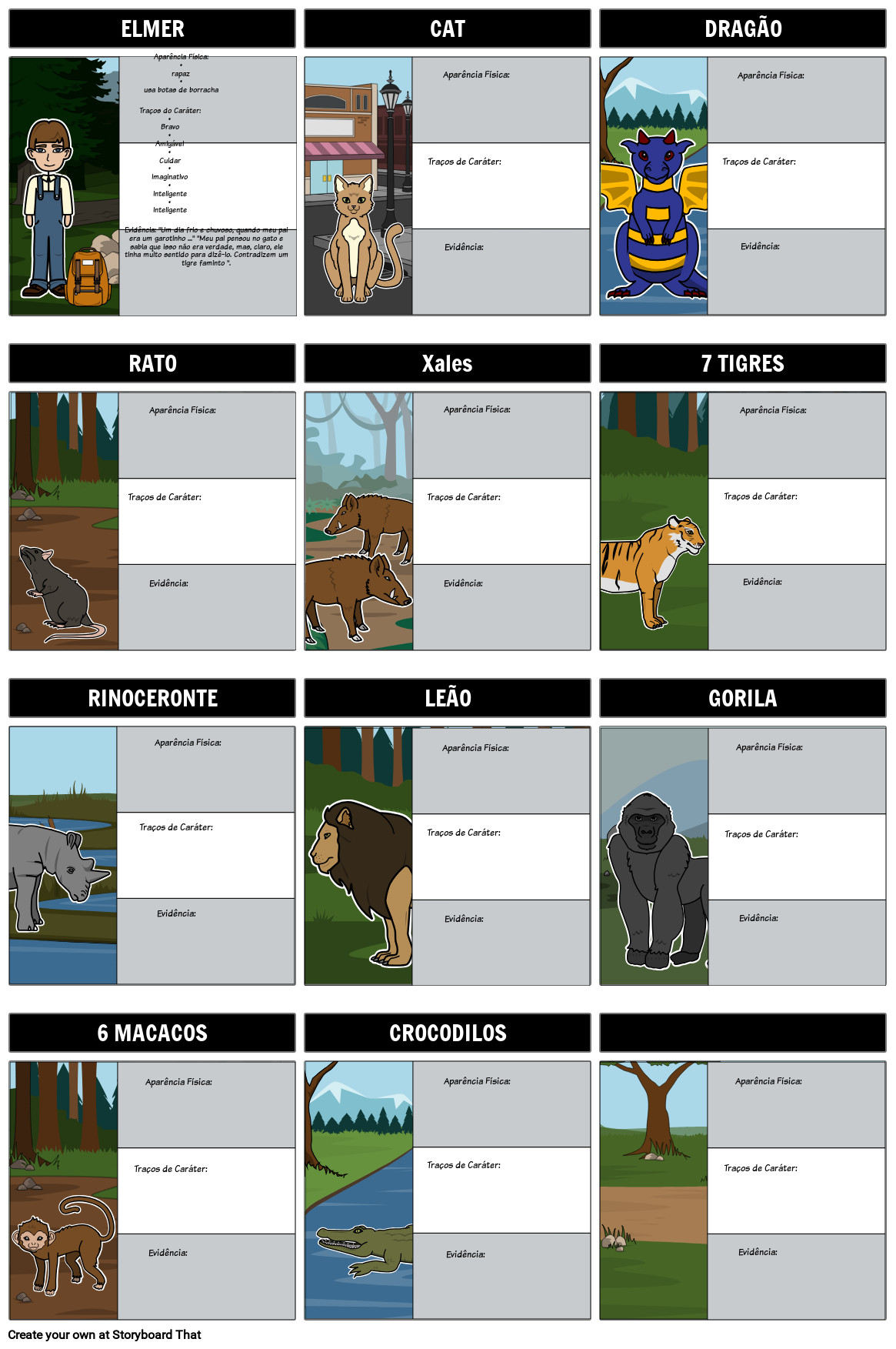 Mapa do Personagem do Dragão do Meu Pai Storyboard