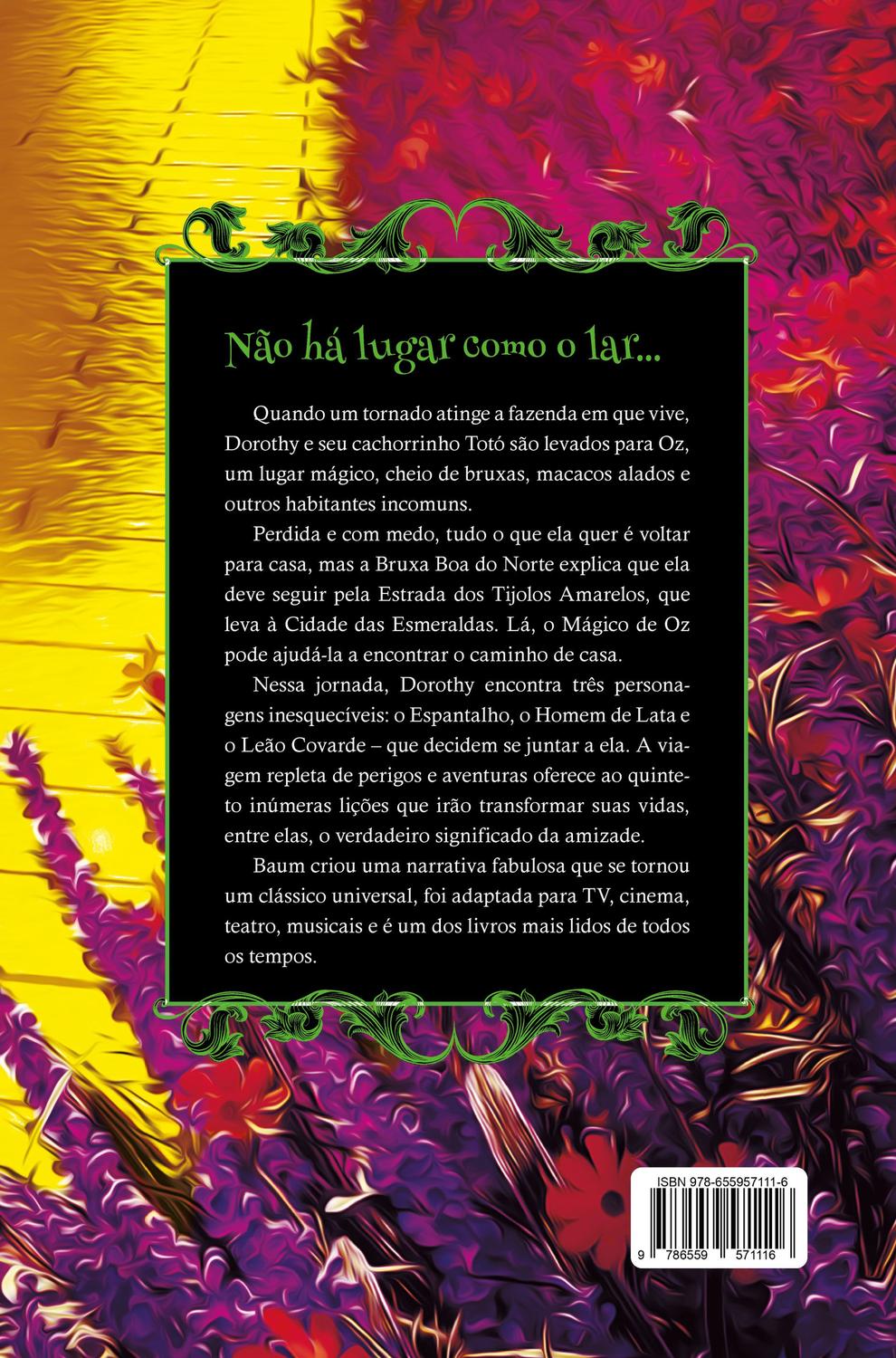 Escritor: L. Frank Baum. Editora: Zahar. Páginas: 224 (edição de bolso) Sinopse: "Após a passagem de um ciclone, Dorothy e seu cachorrinho Totó vão parar na estranha Terra do Oz. Ao lado de novos amigos - o Espantalho, o Lenhador de Lata e o Leão Convarde -, encaram perigos e aventuras, desafios e seus próprios medos, numa longa viagem.