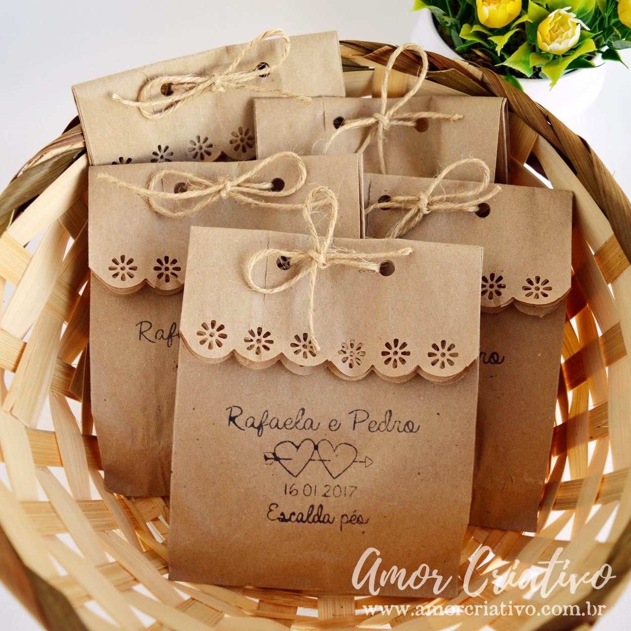 Chaveiros de crochê em formato de coração. 22. Rosas feitas de papel como lembrancinha. 23. Escalda-pés para que os convidados relaxem após a festa. 24. Sabonete em formato de coração com alianças. 25. Agendas e garrafas customizadas com o nome das madrinhas.