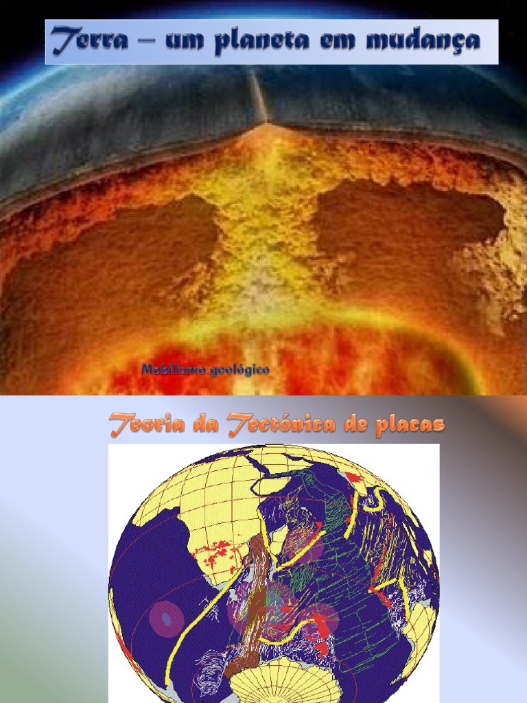 Teoria das placas tectônicas. Também conhecida por Tectônica de Placas, esta teoria diz que a litosfera é composta por diversos "pedaços quebrados" e que estão em constante deslocamento sobre o manto do planeta. Desenvolvida no final da década de 1960 pela dupla de cientistas Robert Palmer e Donald Mackenzie, essa teoria substituiu a.