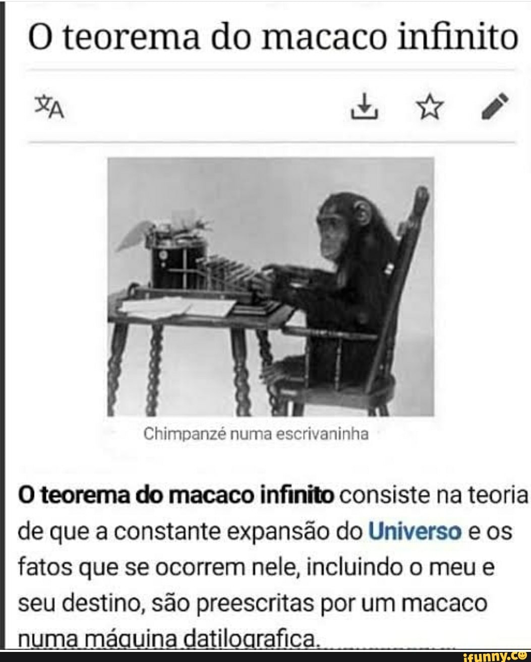 O teorema do macaco infinito, mas só a parte legal. Memes Hu3 BR Amino