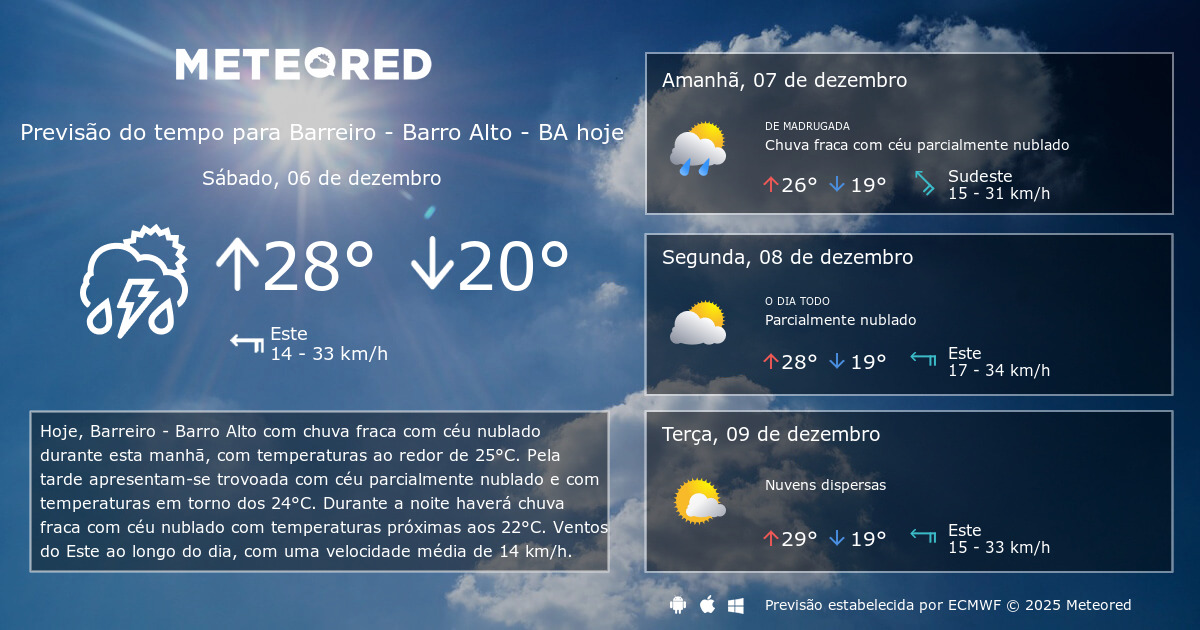 Previsão do tempo Barreiro Barro Alto BA. 14 dias Meteored
