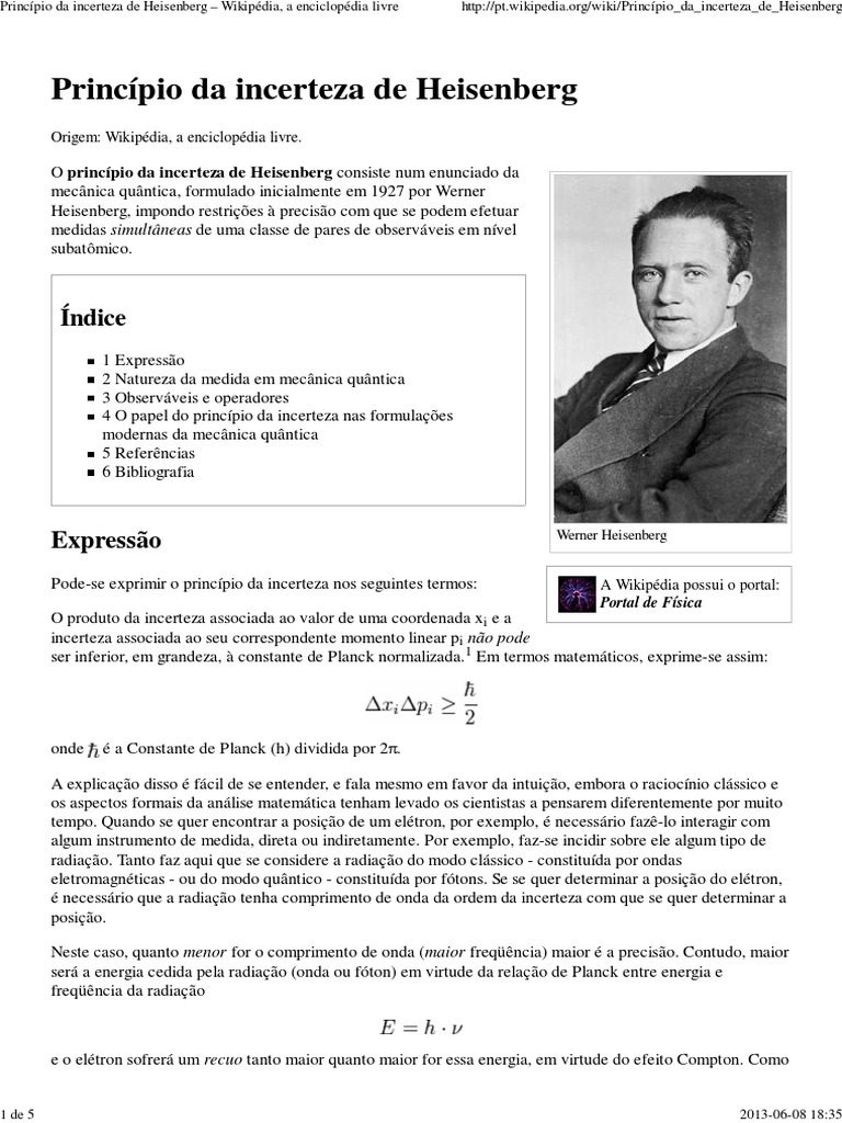 Princípio da incerteza de Heisenberg Wikipédia, a enciclopédia livre