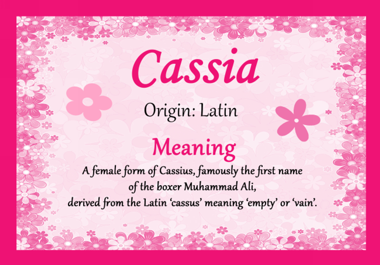Cassia Personalised Name Meaning Certificate The Card Zoo