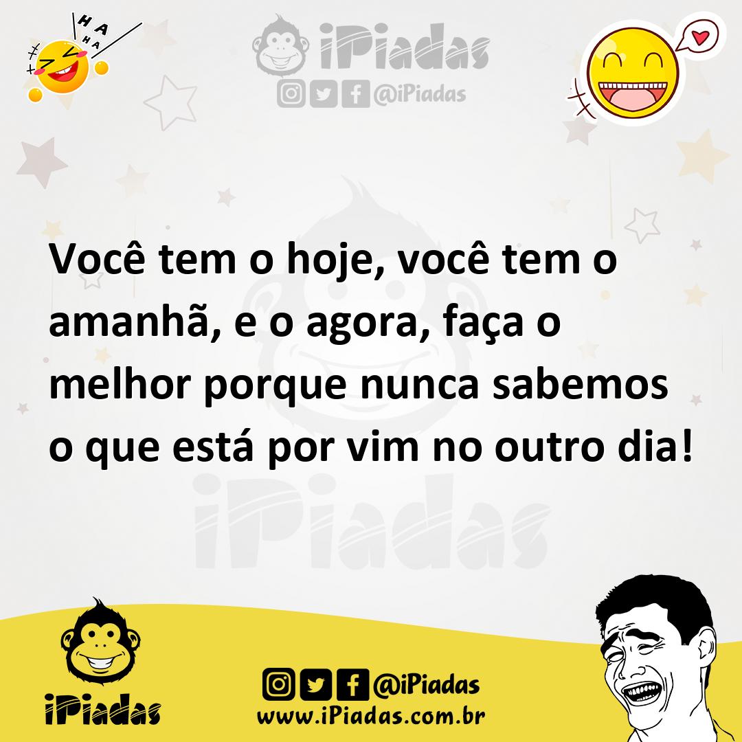 Você tem o hoje, você tem o amanhã, e o agora, faça o melhor porque nunca sabemos o que está por